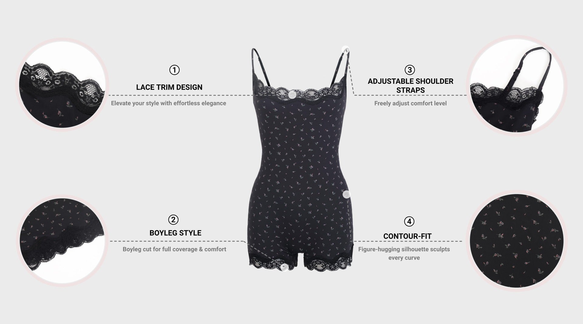 - Lace Neckline and Leg Bands: The intricate lace neckline adds a touch of femininity and charm, while the lace leg bands give a unique and sexy detail, making you stand out.